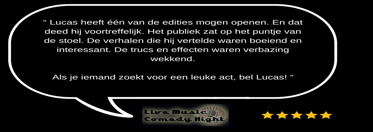 Jazeker! Bent u op zoek naar een unieke en interactieve vorm van entertainment op uw bedrijfsfeest, personeelsfeest of team-building? Dan is het boeken van Lucas dé perfecte keuze! Een goochelaar is misschien niet het eerste waar u aan dacht. Terwijl een goochelaar op uw bedrijfsfeest niet alleen zorgt voor een memorabele ervaring, maar ook voor een fantastische sfeer waarin mensen met elkaar in gesprek raken en plezier hebben. Het wordt binnen het bedrijf een gedeelde ervaring waar nog lang over nagepraat zal worden!
